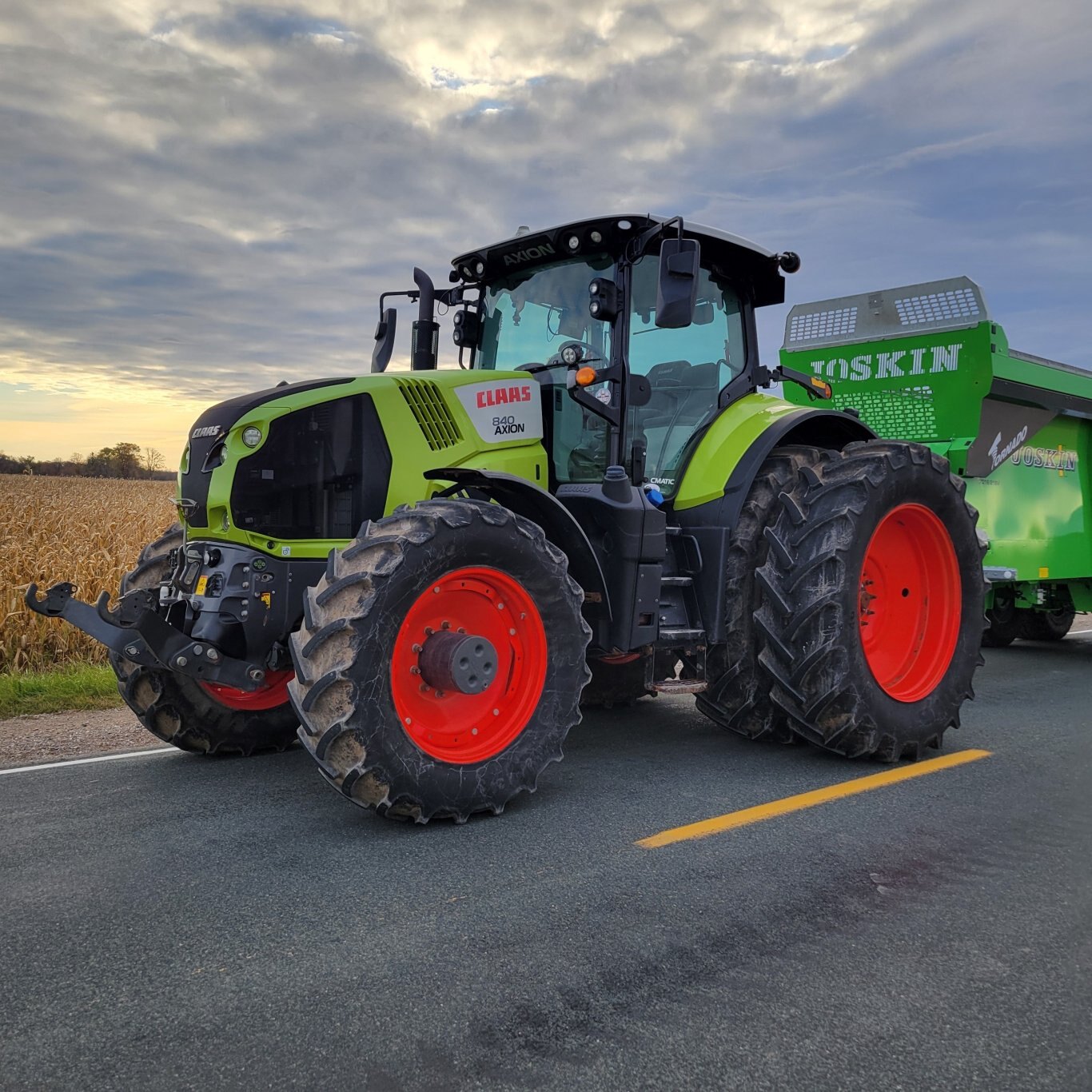 Claas 840 Axion tractor. 2020 , 2366 hrs Front 3 point and pto 55 km/h , C-Matic Vario trans. 230 hp , 6.7 FPT engine Clean/ well maintained tractor. Dual rear tire 520/85 x R46 Front 420/85 x R34
